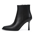 Изящные кожаные ботильоны черного цвета. Пара утеплена мягким ворсином. Тонкий каблук высотой 90 мм обеспечивает комфортное распределение нагрузки по стопе. Модель с практичной застежкой на молнию и заостренной формой носочной части.