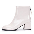 Молочные кожаные ботильоны на устойчивом каблуке. Пара утеплена мягким ворсином. Прочная резиновая подошва формирует устойчивость на любых покрытиях. Модель с застежкой на молнию.