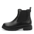 Модельные женские челси черного цвета. Ботинки немецкого бренда, выполненные из кожи, хорошо защитят ноги от холода, влаги, сырости. Они утеплены ворсином. В верхней части голенища – широкие резинки, которые фиксируют лодыжку, не сдавливая ее. Подошва обуви – плотная, в тон верху, с монолитным каблуком.