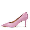 Женские туфли-лодочки из натуральной дышащей кожи ярко-розового цвета с острым носом и закрытой пяткой. На устойчивом среднем каблуке и гибкой резиновой подошве с противоскользящими свойствами. Стильная и комфортная модель для работы и повседневной носки. Легкие и изящные, идеально сочетаются с платьями и брюками.