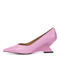 Яркие женские туфли-лодочки из натуральной кожи шевро насыщенного розового цвета с острым носом и закрытой пяткой. Модель на устойчивом среднем каблуке необычной формы с гибкой и износостойкой резиновой подошвой с противоскользящим покрытием. Комфортные и стильные для весенне-летнего сезона и офиса.