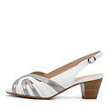 Белые босоножки из натуральной кожи – это идеальное сочетание стиля и комфорта. Серебристые вставки делают данную модель особенно эффектной, а устойчивый каблук высотой 5,2 см и удобный ремешок с пряжкой, надежно фиксирующий обувь на пятке, - максимально комфортной. Подкладка также выполнена из натуральной кожи.
