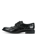 Элегантные женские полуботинки черного цвета гармонично сочетаются с широкими или классическими брюками, с прямыми юбками. Модель выполнена из спилка, стелька – кожаная, подкладка – текстильная. Носок и задник обуви декорированы лаконичным брогированием. Пара на низком каблуке, на шнуровке.