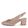 Модельные туфли, выдержанные в светло-бежевом цвете, отлично дополнят образы в деловом, романтичном и праздничном стилях. Дизайн обуви достаточно лаконичен, но интересен за счет узорной перфорации на союзке и по бокам. Носок округлый, закрытый, пятка открытая, задник с застежкой на пряжке. Материал верха – стойкий к изломам шевро.