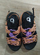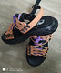 Женские летние сандалии – эффектное сочетание черного и оранжевого цветов. Толстая черная подошва высотой 35 мм обеспечивает равномерное распределение нагрузки и поддержку стопы. Оригинальная оранжевая шнуровка дополнена сиреневой вставкой. Хотя она выполняет декоративную функцию, ее можно регулировать. Сандалии сшиты из натуральной кожи.