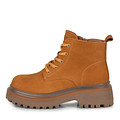 Практичные рыжие ботинки из нубука с подкладкой из ворсина. Трендовая массивная подошва из материала ЭВА гарантирует устойчивость на любых покрытиях, а также хорошо амортизирует нагрузку. Прочная шнуровка и застежка на молнию, петля на голенище. Ботинки отлично подойдут для длительных прогулок, посещения офиса и повседневнных дел.