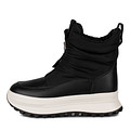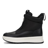 Базовые черные женские "дутики" с верхом из текстиля и кожи из спилка. Подкладка и стелька изготовлены из мягкой натуральной шерсти. Высокая резиновая подошва надежно защищает стопы от холода и обеспечивает отличное сцепление с поверхностью. Застежка на молнию.