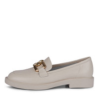 Классические кожаные лоферы бежевого цвета. Легкая модель без подкладки снабжена мягкой стелькой из нежной кожи шевро. За оптимальную поддержку стоп отвечает гибкая резиновая подошва. Пара дополнена трендовым декором с цепочкой.
