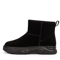 Уютные черные угги. Верх выполнен из прочного спилка с бархатистой фактурой. Подкладка и стелька, изготовленные из натуральной шерсти, обеспечивают комфортную терморегуляцию внутри пары. Высокая подошва из резины обеспечивает устойчивость на любых покрытиях. Модель с широким голенищем и практичной застежкой на молнию.