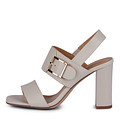 Эффектные молочные кожаные босоножки на устойчивом каблуке. Комфорт стоп и идеальную посадку обеспечивают подкладка и стелька, выполненные из нежной кожи шевро. Графичный каблук высотой 90 мм формирует оптимальное распределение нагрузки по стопе. Трендовая модель гармонично дополнит образы с брюками, платьями и воздушными юбками.