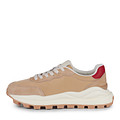 Текстильные бежевые кроссовки со вставками из спилка. Оптимальный воздухообмен и идеальную посадку гарантируют дышащая текстильная подкладка и кожаная стелька. Легкая подошва из материала ЭВА отлично амортизирует нагрузку. Утолщенный ворот добавляет комфорт в зоне щиколоток. Модель хорошо подойдет для образов с джинсами и брюками.