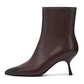 Ботильоны выполнены из нежной кожи шевро. Модель представлена в трендовом бордовом цвете. Демисезонную пару дополнили боковой молнией. Подкладка и стелька изготовлены из мягкого и тёплого ворсина. Подошва из тунита обеспечивает оптимальную амортизацию и защиту стопы в течение всего дня. Высота фигурного каблука 75 мм.