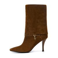 Полусапоги из натуральной кожи установили на высокий каблук 85 мм. Широкое голенище без застежки дополнили отворотом, а декоративный ремешок на подъеме подчеркнули металлической монограммой Salamander. Подкладку и стельки демисезонной обуви выполнили из ворсина. Подошва из тунита создает максимальный комфорт и имеет высокую прочность.