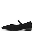 Туфли-лодочки в стиле "Мэри Джейн" с регулируемым ремешком на подъеме выполнили из бархатистого велюра. Модель чёрного цвета. Подкладка из натуральной кожи и стелька из кожи шевро обеспечивают комфортный воздухообмен.Высота каблука 23 мм.