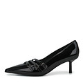 Акцентные туфли из кожи из спилка декорированы трендовыми ремешками. Мягкая кожаная подкладка и стелька из шевро формируют хороший воздухообмен. Изящный каблук высотой 60 мм обеспечивает равномерное распределение нагрузки по стопе.
