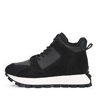 Стильные высокие кроссовки в актуальной коричневой гамме. Верх комбинирует текстурированную кожу и бархатистый спилок. Стелька с эффектом памяти утеплена мягким ворсином и гарантирует комфорт в процессе активной носки. Белая высокая подошва из полиуретана отлично амортизирует нагрузку на стопы.