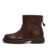 Лаконичные демисезонные ботинки выполнили из натуральной кожи. Пара представлена в чёрном цвете. Внутренняя подкладка из ворсина обеспечивает дополнительный комфорт и циркуляцию воздуха внутри пары, предотвращая перегрев или охлаждение ног. Демисезонная модель на подошве из резины застегивается молнией сзади и сбоку.