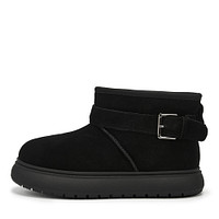Угги из бархатистого спилка на широкой протекторной подошве утеплили натуральной шерстью. Цвет зимней обуви бордовый. Пара изготовлена с применением технологии Munz Memory: уникальная стелька, обладающая памятью формы стопы, подстраивается под индивидуальные анатомические особенности. Модель дополнили ремешком с прямоугольной пряжкой. Прочная подошва из резины гарантирует долговечность и надежность.