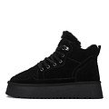 Уютные черные угги с функциональной шнуровкой. Верх и подкладка выполнены из бархатистого спилка. Стелька дополнительно утеплена натуральной шерстью. Высокая подошва из материала ТЭП обеспечивает хорошее сцепление с любой поверхностью.