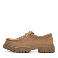 Минималистичные бежевые ботинки-дерби выполнены в классическом стиле. Материал верха - прочный бархатистый спилок. Текстильная подкладка и кожаная стелька гарантируют комфорт стоп в процессе носки. Высокая подошва из ТЭП отличается легкостью и устойчивостью на любых покрытиях.