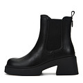 Трендовые черные ботинки в стиле челси. Верх выполнен из матовой кожи из спилка. Подкладка и стелька выполнены из мягкого ворсина. Для удобства надевания модели предусмотрена молния. Высокая подошва из материала ТЭП хорошо амортизирует нагрузку на стопы и отличается прочностью.
