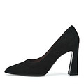 Элегантные черные туфли из женственного велюра. Подкладка и стелька из нежной кожи шевро идеально адаптируются под форму стопы. Тунитовая подошва отличается прочностью и износостойкостью. Фигурный каблук высотой 9,7 см грамотно распределяет нагрузку на ногу.