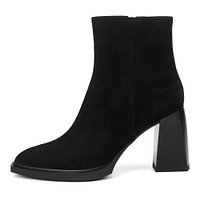 Элегантные черные ботильоны. Натуральная кожа верха отлично защищает от влаги и ветра, а ворсиновые подкладка и стелька обеспечивают оптимальную терморегуляцию. Утолщенная подошва из резины отличается прочностью. Устойчивый фигурный каблук высотой 90 мм грамотно распределяет нагрузку на ноги и визуально вытягивает силуэт.