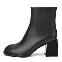 Утонченные ботильоны в классическом черном исполнении. Верх выполнен из натуральной кожи, которая защитит от непогоды. Подкладка и стелька утеплены мягким ворсином. Утолщенная резиновая подошва отличается прочностью и гибкостью. Широкий устойчивый каблук высотой 75 мм грамотно распределяет нагрузку на ноги.