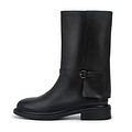 Полусапоги из натуральной кожи чёрного цвета. Демисезонную модель с широким голенищем украсили ремешком, регулируемым металлической пряжкой. Подкладка и стелька из ворсина создает идеальный микроклимат и сохраняет тепло в прохладную погоду. Высококачественная резина в конструкции подошвы создает идеальный баланс между комфортом и защитой от усталости.