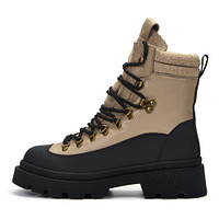 Актуальные темно-коричневые ботинки в стиле рабочей обуви. Верх выполнен из практичной натуральной кожи с эластичными текстильными вставками в районе голенища. Подкладка и стелька утеплены шерстью. Утолщенная тракторная подошва из резины обеспечивают устойчивость на любой поверхности.