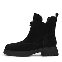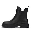 Стильные черные ботинки из гладкой натуральной кожи. Графичный вырез на вороте придает дизайну оригинальности. Шерстяные подкладка и стелька поддерживают комфортную температуру внутри обуви на улице и в помещении. Высокая резиновая подошва с выраженными протекторами отличается прочностью и хорошим сцеплением с поверхностью.