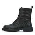 Универсальные черные ботинки под кожу рептилии с высокой шнуровкой станут базовой парой под любой гардероб. Материал верха - натуральная кожа из спилка. Подкладка и стелька утеплены мягким ворсином. Утолщенная резиновая подошва отличается прочностью и устойчивостью на любых покрытиях.