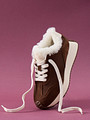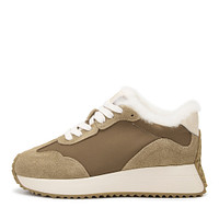 Зимние кроссовки с внутренней отделкой из натуральной шерсти выполнили из текстиля и спилка. Цвет пары - коричневый. Модель с логотипом бренда на язычке поставили на широкую, контрастную подошву из полиуретана с протектором, заходящим на носок и пятку.