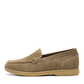 Бежевые пенни-лоферы, с внутренней отделкой из натуральной шерти, выполнены из спилка. Миндалевидный мыс декорирован рельефным швом. Задник подчеркнули миниатюрным логотипом бренда.