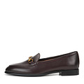 Лаконичные лоферы на тонкой подошве из резины. Цвет модели бордовый. Материал верха - нежная кожа шевро. Лоферы с отделкой из текстиля и стелькой из нежной кожи шевро. Союзку модели украсили золотистой пряжкой-трензелем.