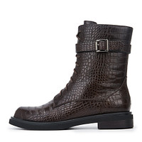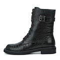 Базовые черные ботинки стилизованные под кожу рептилии. Верх - кожа из спилка. Подкладка и стелька из ворсина поддерживают оптимальную температуру внутри обуви на улице и в помещении. Высокая плотная подошва из резины устойчива на любой поверхности.