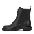 Высокие черные ботинки с шнуровкой. Верх - кожа из спилка. Подкладка и стелька из ворсина поддерживают оптимальную температуру внутри обуви на улице и в помещении. Высокая плотная подошва из резины устойчива на любой поверхности.