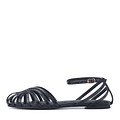 Женские босоножки из экокожи с открытым носом и пяткой, выполненные на низком каблуке. Универсальные и комфортные, подходят для работы, пляжа и праздников. Черные босоножки с лаковым покрытием и текстурой под кожу рептилии, стильный дизайн. Подошва из ТЭП с гибкими противоскользящими свойствами, литой моноблочный каблук.