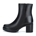 Минималистичные черные ботильоны на холодный сезон. Верх выполнен из гладкой натуральной кожи. Меховые подкладка и стелька сохраняют тепло внутри обуви. Утолщенная подошва из материала ТЭП с выраженными протекторами отличается легкостью, морозоустойчивостью и хорошим сцеплением с поверхностью. Широкий устойчивый каблук высотой 7 см грамотно распределяет нагрузку на стопы.