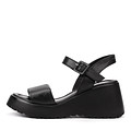 Черные летние босоножки на высокой танкетке в стиле 90-х. Широкие ремешки из натуральной кожи деликатно облегают ступню и надежно фиксируют обувь на ноге. Кожаные стелька и подкладка обеспечивают комфортный воздухообмен. Высокая подошва выполнена из полиуретана, отличительные черты которого — легкость и износостойкость.