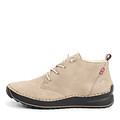 Очень красивые и нежные женские ботинки на зиму светло-бежевого цвета. Они произведены из искусственной кожи, закрывают щиколотку, подходят для повседневной носки. Внутри – натуральная шерсть, которая отлично согревает. Полиуретановая подошва не трескается, хорошо амортизирует. Пара на шнурках и резинках.