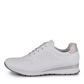 Лаконичные белые кожаные кроссовки с перфорацией. Подкладка и стелька, изготовленные из мягкого текстиля, формируют комфорт стоп. Гибкая подошва из полиуретана поддерживает стопы в оптимальном положении. Шнуровка надежно фиксирует пару на ногах.