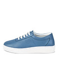 Голубые кроссовки с декоративной перфорацией понравятся тем, кто любит необычные вещи. Классический фасон смотрится интереснее благодаря яркому оттенку, который сочетается с различными цветами — нейтральными, пастельными, темной гаммы. Упругая белая подошва легко чистится, поэтому всегда выглядит аккуратно. Этот материал обеспечивает правильное распределение нагрузки.