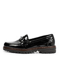 Комфортные повседневные туфли для женщин, ценящих практичность. Они изготовлены из искусственной кожи черного цвета с блеском «под лак», внутри отделаны текстилем, рассчитаны на теплую весну и осень. Полиуретановая подошва оснащена протектором. Сверху имеется декоративная пряжка. Застежки нет.