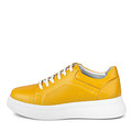 Акцентные кожаные кеды с декоративной перфорацией. Подкладка и стелька обуви в спортивном стиле выполнены из мягкой кожи шевро. Высокая подошва из полиуретана хорошо амортизирует нагрузку и отличается прочностью. Желтые кеды отлично подойдут для долгих прогулок, посещения офиса и активного отдыха.