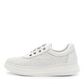 Белые кожаные кеды с перфорацией. Подкладка и стелька из кожи шевро мягко облегают стопу и обеспечивают ощущение комфорта. Высокая подошва из полиуретана отличается легкостью, прочностью и хорошими амортизирующими свойствами. Мягкий ворот демисезонных ботинок бережно поддерживает щиколотки.