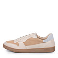 Бежевые кожаные кеды в трендовом ретро-дизайне. Верх обуви в спортивном стиле выполнен из мягкой кожи шевро и дополнен вставками из бархатистого велюра. За отличный влаго- и воздухообмен отвечают кожаные подкладка и стелька. Лаконичные низкие кеды гармонично дополнят повседневные образы с джинсами, кюлотами и юбками-макси.