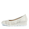 Белые туфли из мягкой кожи шевро. Стелька, также выполненная из шевро, обеспечивает комфорт стоп. Сквозная фигурная перфорация отвечает за отличную вентиляцию. Модель на удобной танкетке подойдет для образов с платьями, юбками и джинсами.