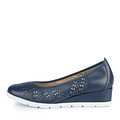Синие туфли из мягкой кожи шевро. Стелька, также выполненная из шевро, обеспечивает комфорт стоп. Сквозная фигурная перфорация отвечает за отличную вентиляцию. Модель на удобной танкетке подойдет для образов с платьями, юбками и джинсами.
