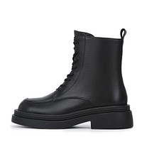 Женские ботинки чёрного цвета с рельефным швом вдоль мыса выполнили из спилка. Шерстяная подкладка защищает от холода, молния сбоку облегчает использование, а подошва из ТЭП с каблуком 50 мм гарантирует устойчивость на скользких поверхностях.
